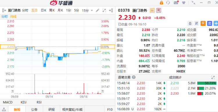 截至2022年6月30日止的半年度业绩为营业额137.59亿元人民币,按年增长11.2%。股东应占盈利上升57.5%至3.08亿示人民币。期内整体毛利率増加0.6个百分点至6.4%。集团主要业务是在厦门经营国际及国内贸易集装箱、散货或杂件货之装卸及储存。另有部份港口配套增值服务,当中包括港口物流、拖轮服务、航运代理、理货或建材制造、加工和销售工业产品的贸易。