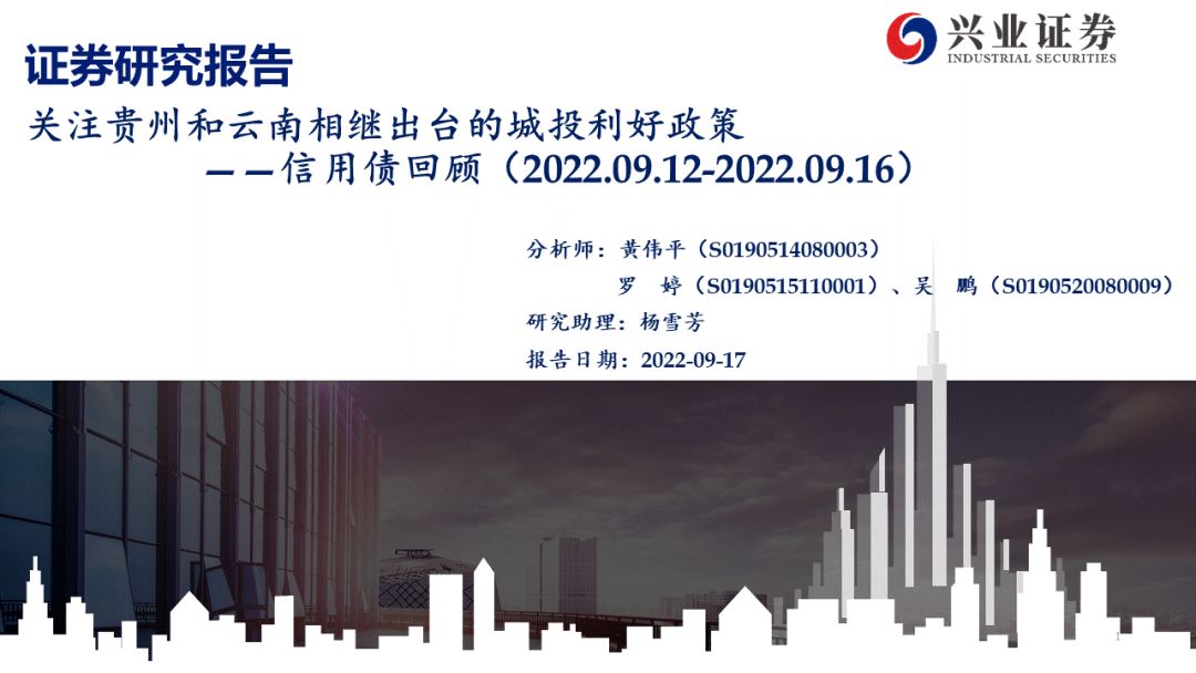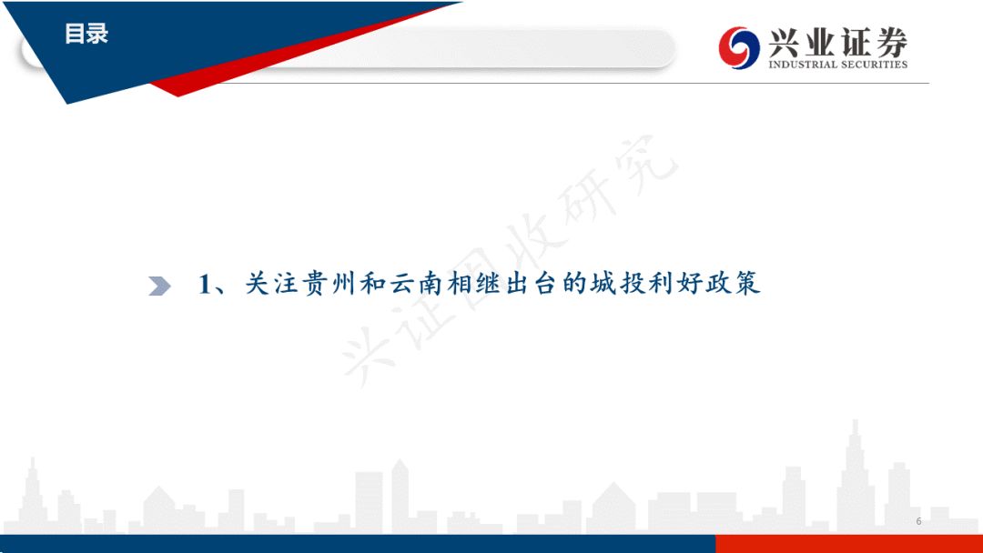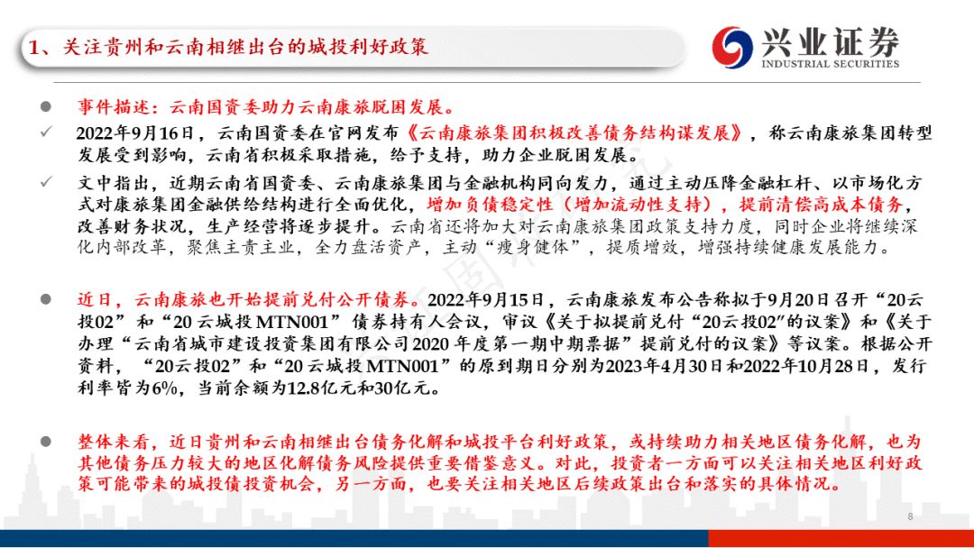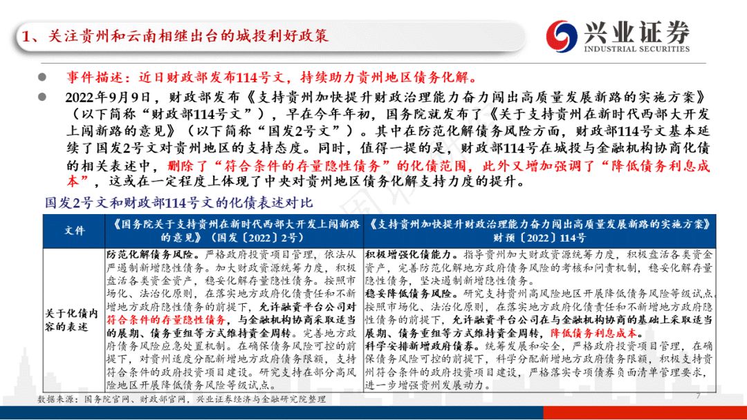 一、关注贵州和云南相继出台的城投利好政策