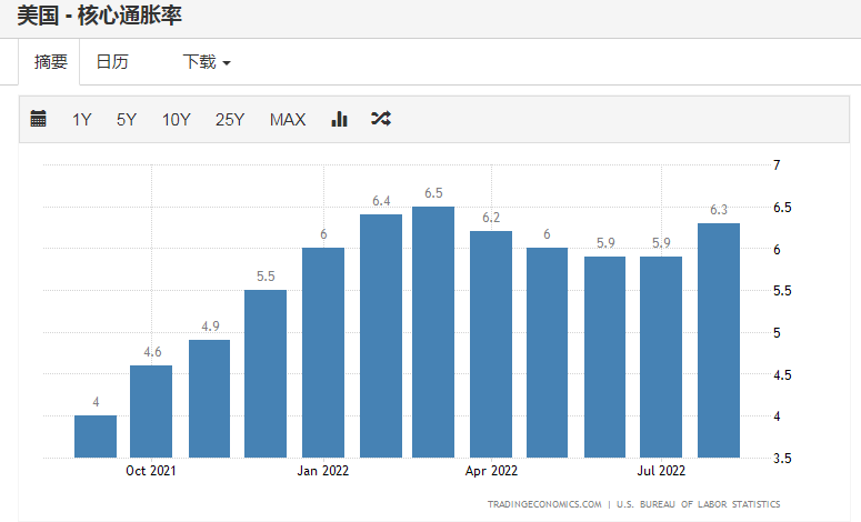 作为美联储决议前的最后一项关键数据,8月CPI报告给此前有关货币政策降温的猜测“当头一棒”。虽然油价下跌令整体通胀水平继续下调,但8月份的核心通胀率也从前一个月的5.9%攀升至6.3%,与3月份6.5%创下的近40年高点相差不远,而美联储将核心CPI视为衡量未来通胀趋势的更好指标。