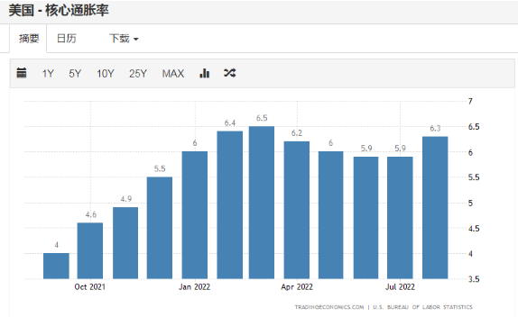 作为美联储决议前的最后一项关键数据,8月CPI报告给此前有关货币政策降温的猜测“当头一棒”。虽然油价下跌令整体通胀水平继续下调,但8月份的核心通胀率也从前一个月的5.9%攀升至6.3%,与3月份6.5%创下的近40年高点相差不远,而美联储将核心CPI视为衡量未来通胀趋势的更好指标。