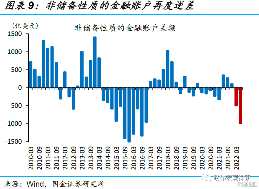 部分观点认为,中美利差持续倒挂下,可能出现了大规模的资本外流。7月28日美联储加息后,中美短端政策利率出现自08年以来首度倒挂;而8月15日央行降息,进一步加深了这一倒挂。分化的政策利率下,中美10年期国债利率持续倒挂。在中美利差持续走低、但尚未倒挂的一季度,外管局统计的国际收支平衡表,非储备性质金融账户已流出497亿美元,二季度更是流出高达993亿美元;此外,市场担忧还有部分资金外流压力反映在“遗漏与误差项”上。