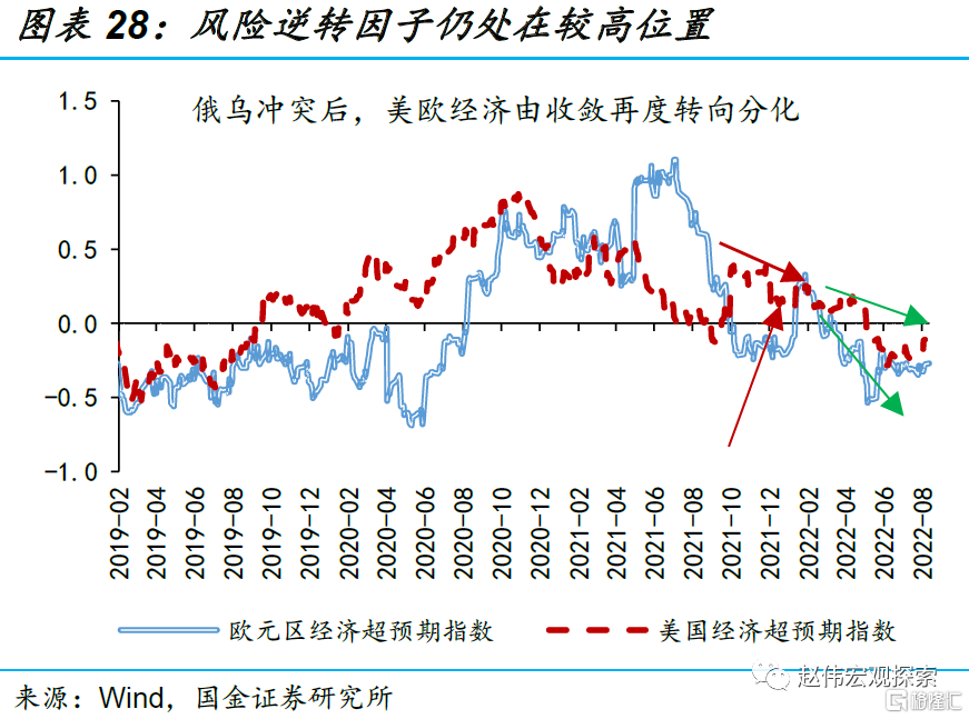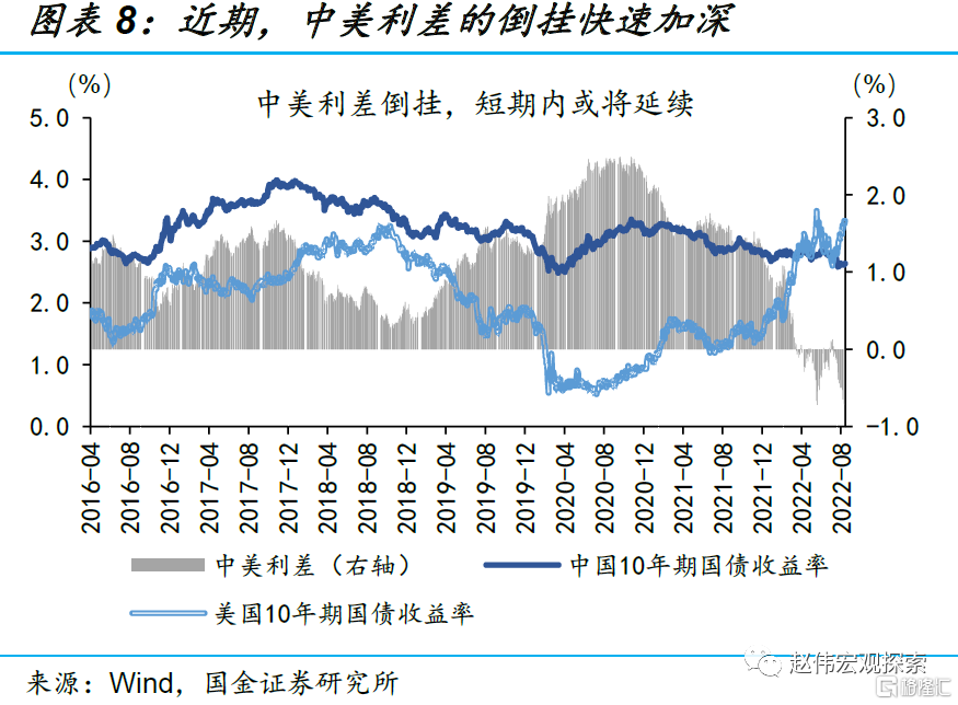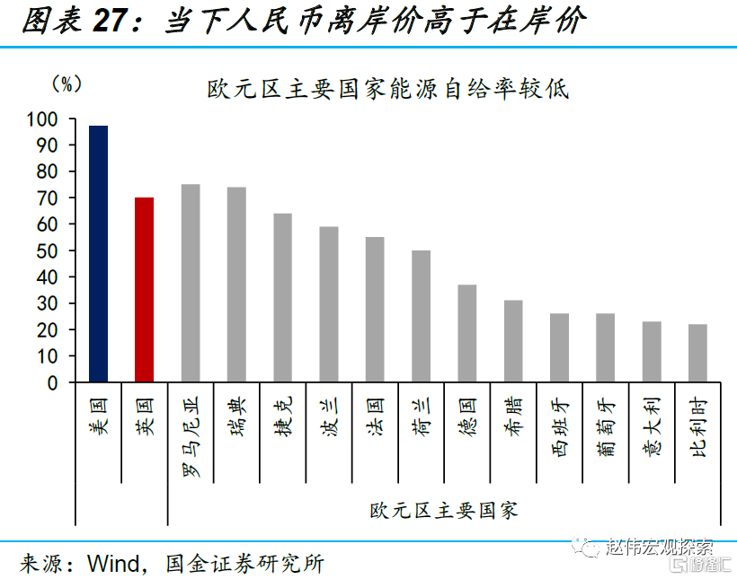 短期来看,强美元压制下,人民币或仍有一定贬值压力。在央行退出外汇市场常态化干预后,央行工具多用于防止贬值预期的自我强化下、汇率过快地贬值,而升贬值趋势的逆转往往需要市场核心驱动因素的转变,如2018年的中美贸易摩擦、2020年疫情下美元流动性紧张等,本轮贬值的主因则是强势美元的压制。美元本轮的强势,受能源危机下美欧经济分化支撑,而能源的供给受限并非短期问题,这一过程中,能源依赖度较高的欧、日相较美国衰退程度或将更深。美欧基本面分化下,美元阶段性强势或难改变,或仍将对人民币构成贬值压力。