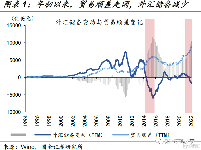 1、外汇市场的“反常”?贸易持续顺差,但外汇储备大幅减少