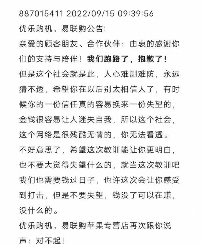 首先是易联购小程序收了近千万的预售款后卷款逃走,并发了一份堪称史上最嚣张声明。