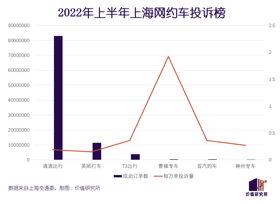 从单个平台看,美团打车接获的投诉为177起,每万单投诉量0.15起,在上榜的全部18个平台中是最低的。对比之下,滴滴的总投诉量和每万单投诉量分别为1573起和0.19起。