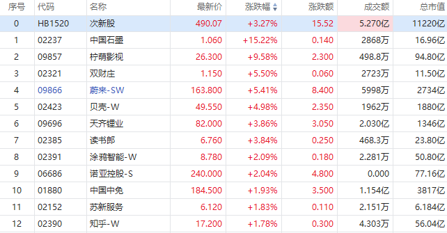 港股次新股板块表现强势!中国石墨涨15%柠萌影视涨9%