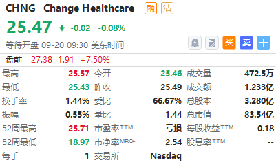 美股盘前,Change Healthcare涨7.5%,报27.38美元。美国联合健康集团以78亿美元收购医疗信息化公司Change Healthcare的交易获得法院批准。此前该交易遭到美国司法部的反垄断诉讼,核心理由是联合健康或将控制大量医疗保健数据。