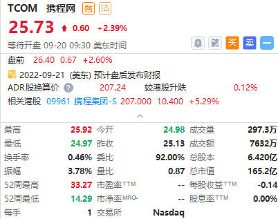 携程网 $TCOM 盘前涨超2%,国庆假期临近旅游回暖