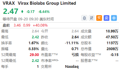猴痘概念股Virax $VRAX 盘前暴涨超40%,据悉在欧洲推出猴痘抗原快速检测