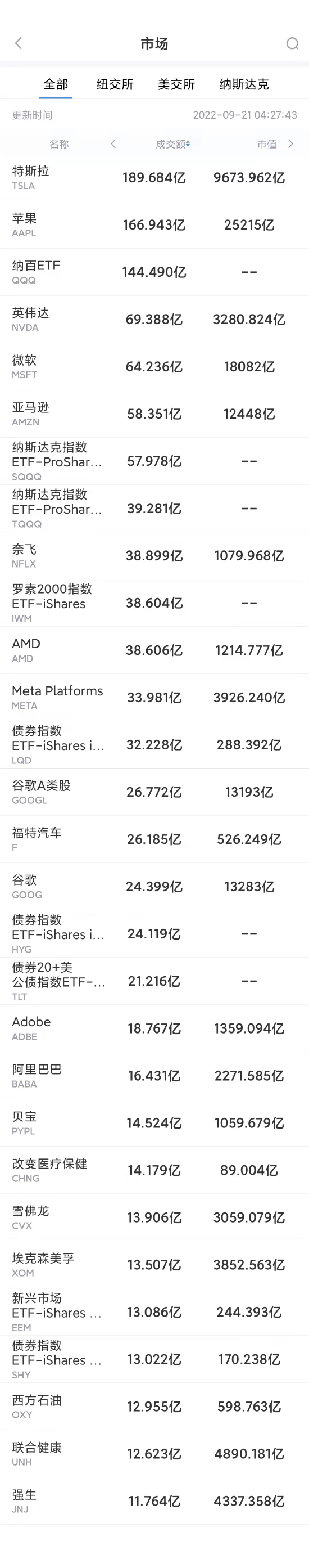 以下为美股当日交易最活跃的20只股票(按成交额):