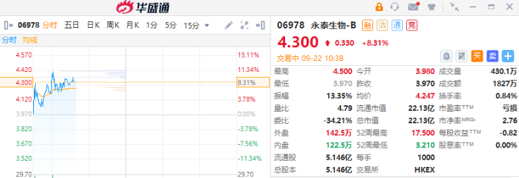 9月22日,永泰生物-B早盘再度活跃,升超8%,公司股价昨日逆势涨超17%。