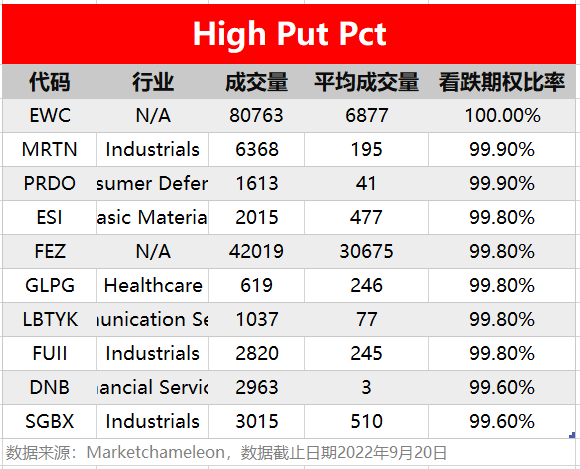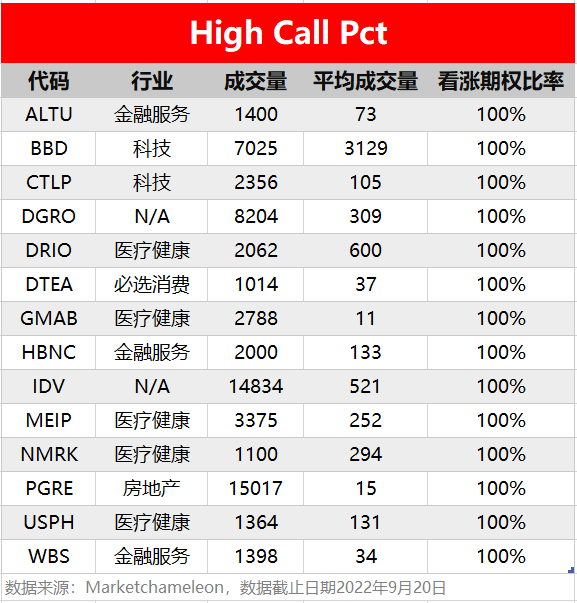 注:High Call Pct/High Put Pct是指相关期权标的当前看涨/看跌比例大小,该比值越高意味着该期权标的看涨/看跌的合约占比越高。