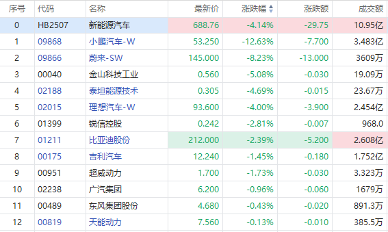 华盛资讯9月22日讯,港股汽车股早盘集体走低,截至发稿,小鹏汽车-W重挫13%,蔚来-SW跌8.23%,理想汽车-W跌4.0%,比亚迪股份跌2.39%,吉利汽车跌1.45%。