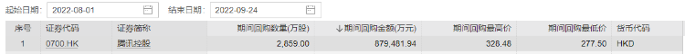 - 腾讯25天暴力回购逾87亿港元!9月22日注销2244万股已回购股份
