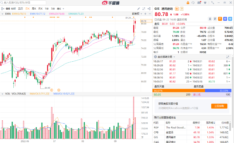 通用磨坊的股价目前达到了80.64美元,该股今年以来上涨了约20%,表现远超基准指数。此外,近期该股在公布了好于预期的最新季度收益后,股价继续上涨。