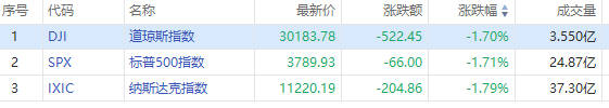 美东时间周三(9月21日),美联储宣布加息75基点,三大股指集体下跌。道指收跌1.7%,标普500指数收跌1.71%,纳指收跌1.79%。