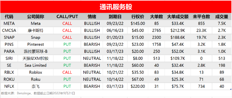 重点动态:Snap于2023年1月20日到期、行权价15美元的看涨期权出现异动大单,成交2300张,总成本18.9万美元。该期权链行权价较周三收盘价高出近50%,期权总成交超过2300张。