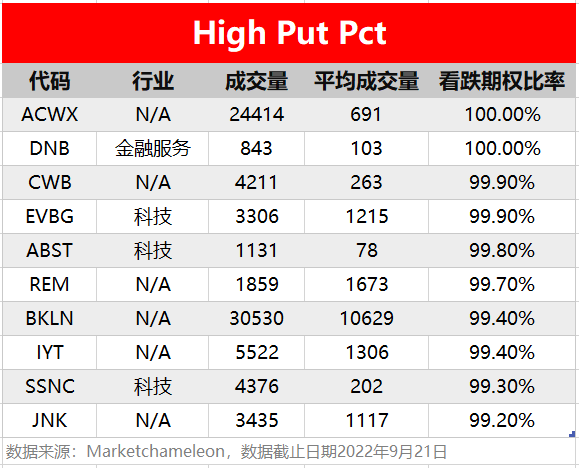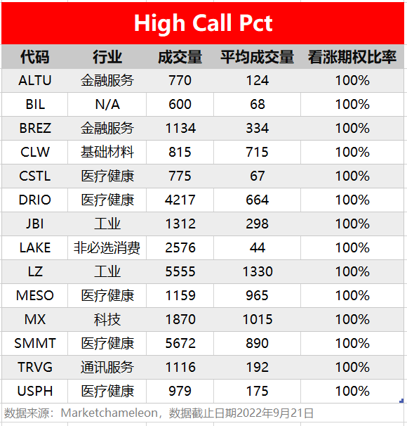 注:High Call Pct/High Put Pct是指相关期权标的当前看涨/看跌比例大小,该比值越高意味着该期权标的看涨/看跌的合约占比越高。