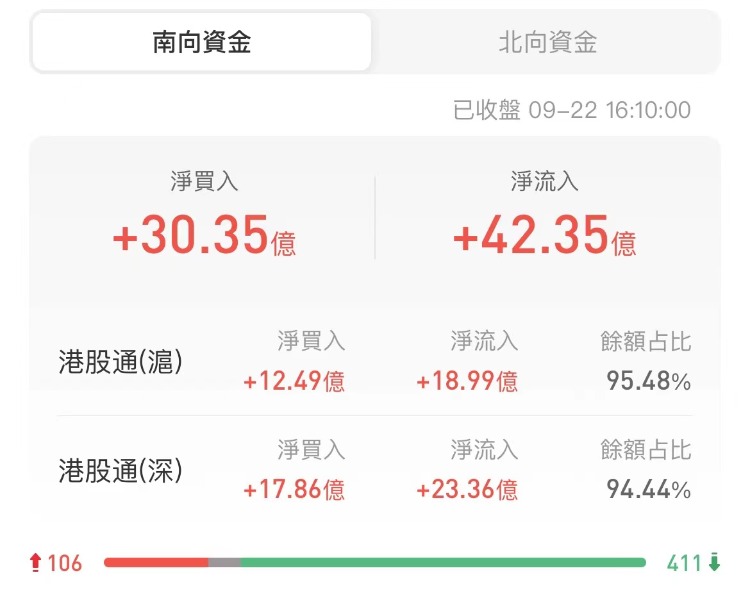 南下资金今日净买入港股30.35亿港元,其中港股通(沪)净买入12.49亿港元,港股通(深)净买入17.86亿港元。上一交易日净买入港股44.25亿港元。
