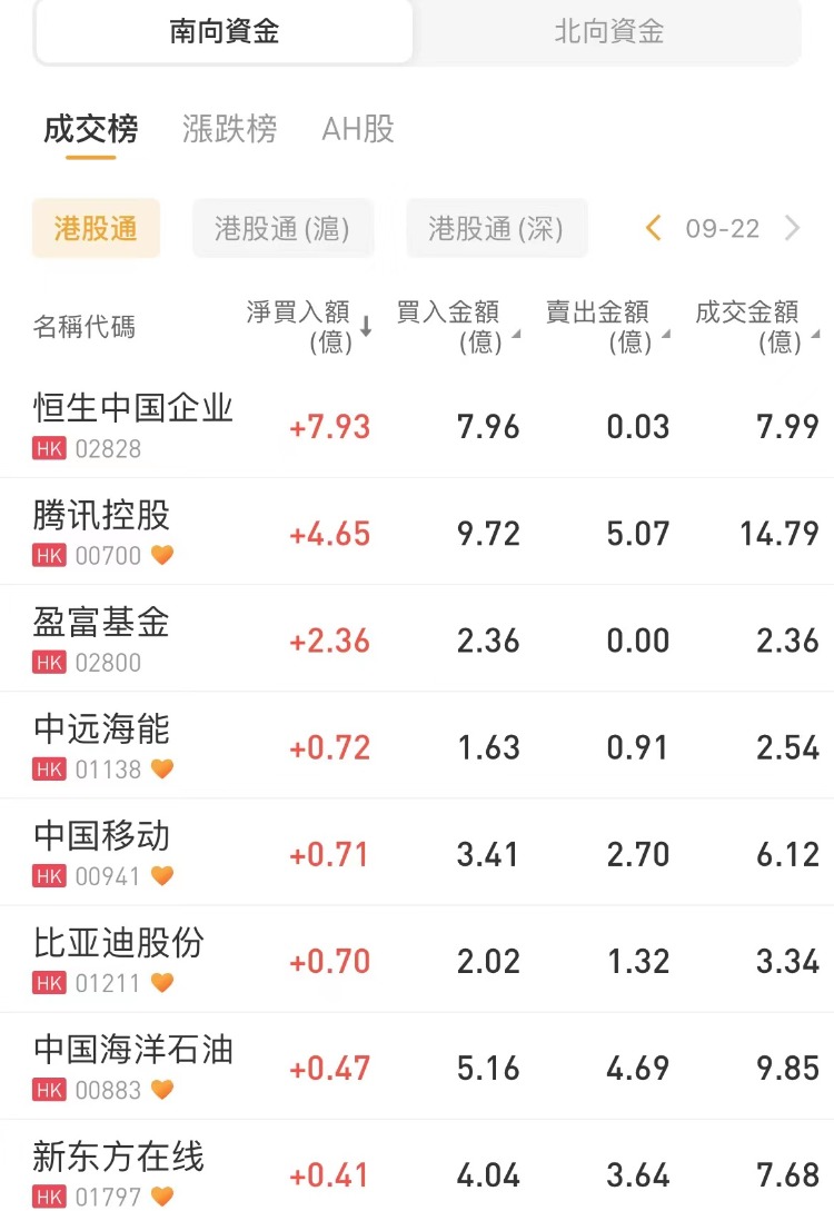 南下资金净买入恒生中国企业 $02828.HK 7.93亿港元,为今日买入之最,净买入腾讯控股 $00700.HK 4.65亿港元。此外,盈富基金 $02800.HK 获净买入2.36亿港元,中远海能 $01138.HK 获净买入0.72亿港元。
