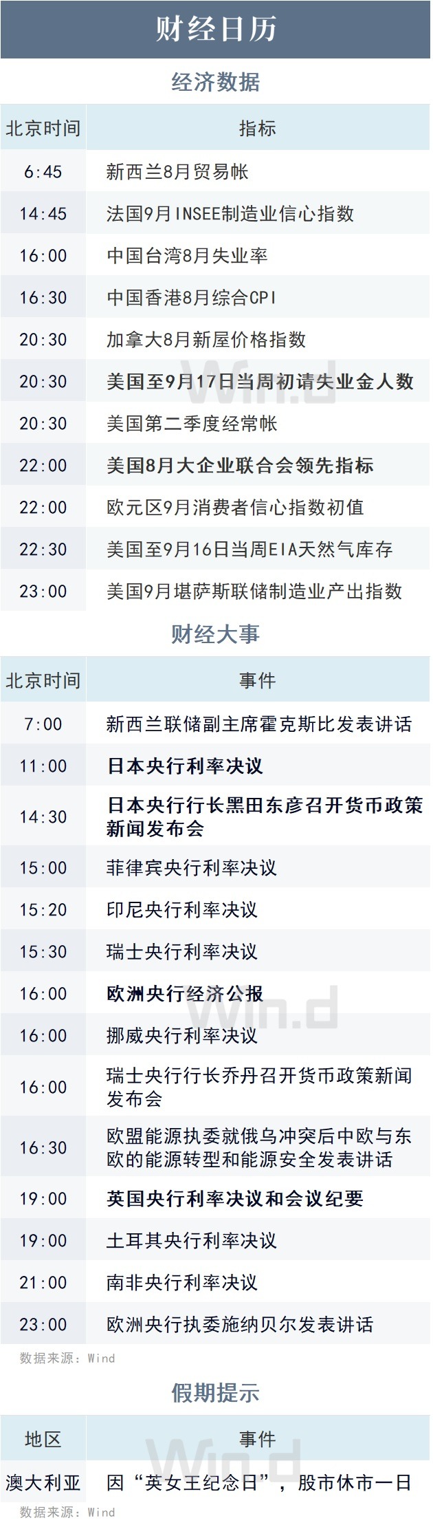 重要经济日程&数据