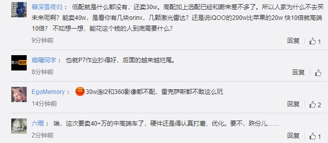 据网友称,低配就是什么都没有,还卖30万,高配加上选配已经和蔚来差不多了,所以人家为什么不去买蔚来呢?30万连L2和360°影像都不配,雷克萨斯都不敢这么玩···