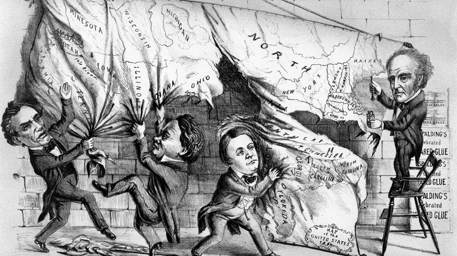 尽管共和党总统候选人Abraham Lincoln尝试低调处理关税这一敏感议题——1860年选举主题停留于奴隶制度应当留存还是废除,但是支持者在自由贸易和保护主义之间摇摆不定的诸多地区高调宣传其对关税的态度。辉格党与共和党的分裂曾在1856年促成民主党掌权,而民主党的分裂则在1860年促成共和党取得压倒性胜利。Lincoln的当选直接导致South Carolina脱离联邦——生产制度变迁产生(废奴主义)的经济影响远超关税制度,南方多地纷纷效仿。
