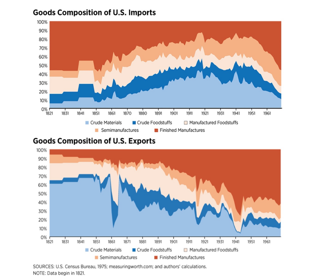 彼时,美国出口大量农产品,而工业品则主要依赖进口。