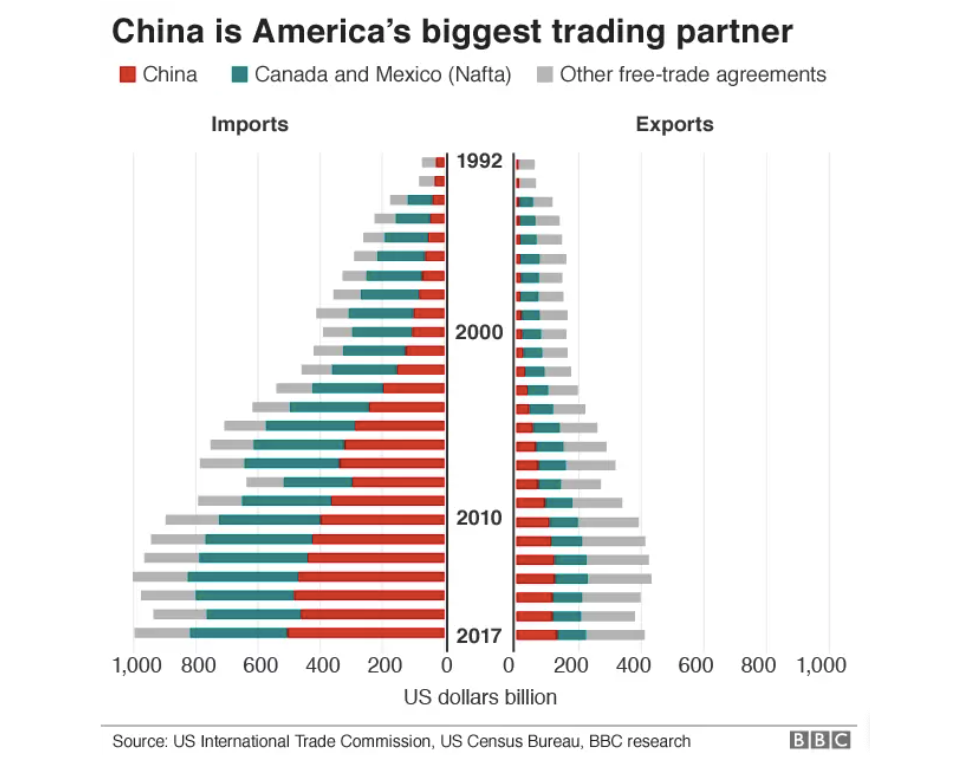 △ 中国是美国最大的贸易伙伴(来源:BBC)