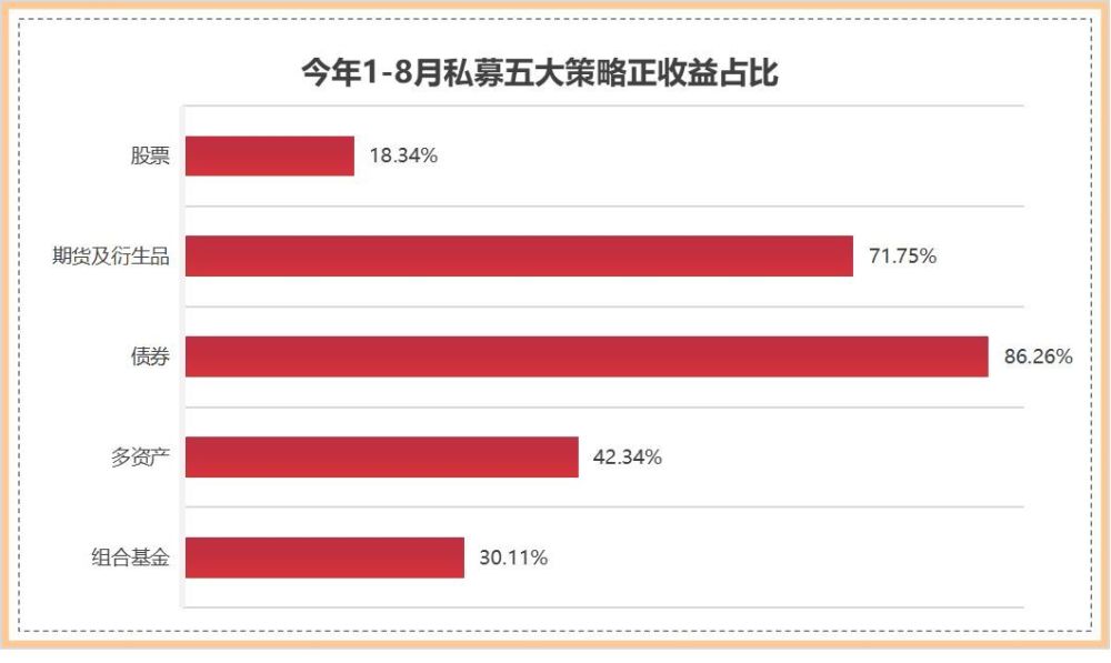 站在纯收益的角度来看,今年1-8月,131家债券策略私募机构的平均策略收益为10.83%,是五大策略中表现最好的。其中113家私募的年内策略收益为正,占比达到71.75%。
