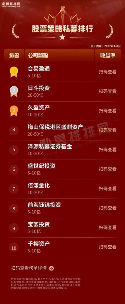 日斗投资以***%的年内策略收益居于次席。刚刚度过“三周岁”的日斗投资可谓“年轻有为”,今年在较于以往更趋复杂的市场环境中一鸣惊人,连续摘得私募排排网多个榜单的冠军宝座,也是今年最具实力的黑马私募之一。