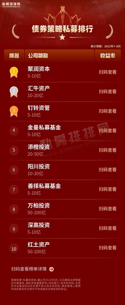 该榜上私募的年内平均债券策略收益达到了42.62%,是五个策略组别中最高的一组,榜首聚润资本的策略收益达到了***%,也是五组榜单中唯一一家在单个策略上实现超100%收益的私募机构,成为债券组的黑马。