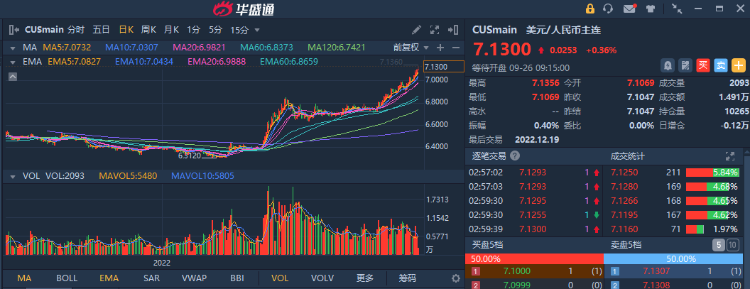 截至上周收盘,美元/人民币已突破7.1,跌势未止。值得一提的是,9月21日,人民币对美元中间价报6.9798,当日即期交易价格最弱触及7.106,较中间价的偏离程度达到近1.6%,近乎触及单日波动的下限。