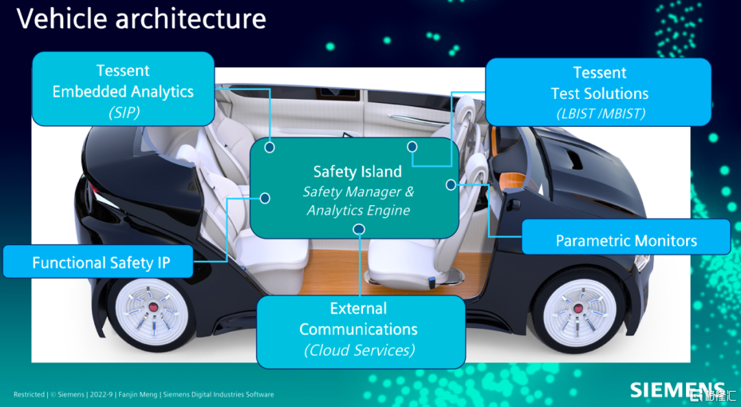 具体到安全方面,汽车安全主要包括功能安全和信息安全两方面。针对功能安全,西门子EDA的Austemper工具能够为客户提供分析、插入、验证全流程的功能安全解决方案。在信息安全方面,西门子EDA的SecureCheck工具,能对芯片内部的网络接口进行监控,对某些密钥和银行账号相关的访问加以控制,SecureCheck基于formal的方案,可以帮助客户做穷举式覆盖,达到100%的芯片验证。