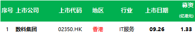 今日(9月26日),数科集团(02350.HK)在港交所挂牌上市,募资1.33亿港元,其公开发售部分获150.3倍超额认购。