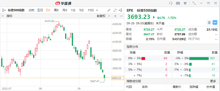 无独有偶,华尔街其他机构也在降低预期,高盛上周四将其对标普500指数的目标值下调至3600点,并警告说,如果美联储加息导致经济 "硬着陆",情况可能会变得更糟。高盛称,在这种情况下,该指数可能较当前水平下跌16%。