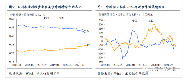 今年中国和日本都十分重视国内经济的稳定。既不会通过紧缩去跟随美联储的政策,也不太可能通过自身经济放缓倒逼联储让步。在汇率压力下,包括中日在内的亚洲经济体动用外储稳定汇率市场的情况可能会越来越多,而当出售美元、购买本币达到一定规模时(现金类资产使用殆尽),出售美债补充美元流动性可能也是不得不做出的选择。