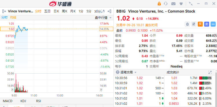 WSB概念股多数走强,截至发稿,BBIG涨超14%,能报1.02美元。3B家居涨超6%,Tilray、Roblox涨超5%,高斯电子涨超3%,SAVA、游戏驿站、Robinhood涨超2%。