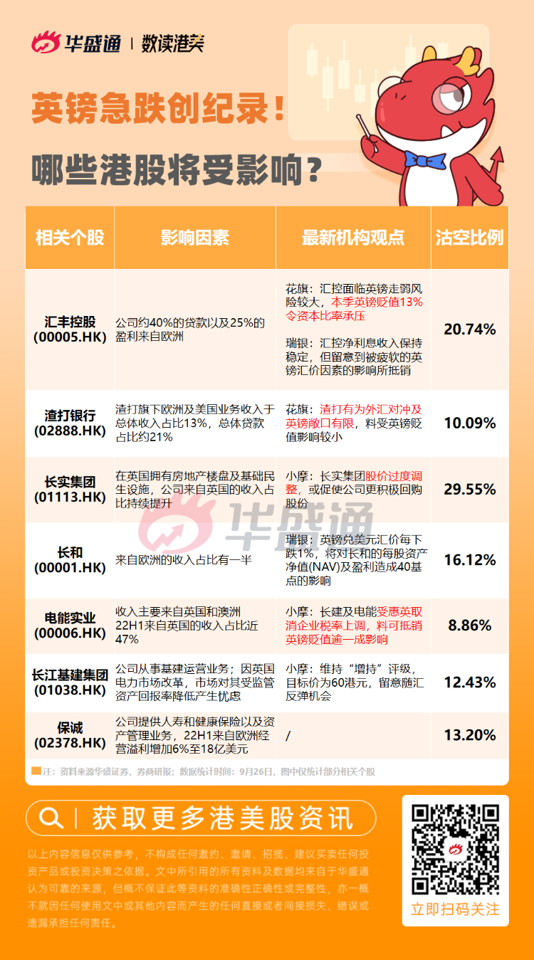 9月27日,受累于镑汇创新低挨沽急挫的港股,今日早盘也跟随镑汇逆市反弹回稳。截至发稿,长实集团涨超2%,渣打银行涨1%。