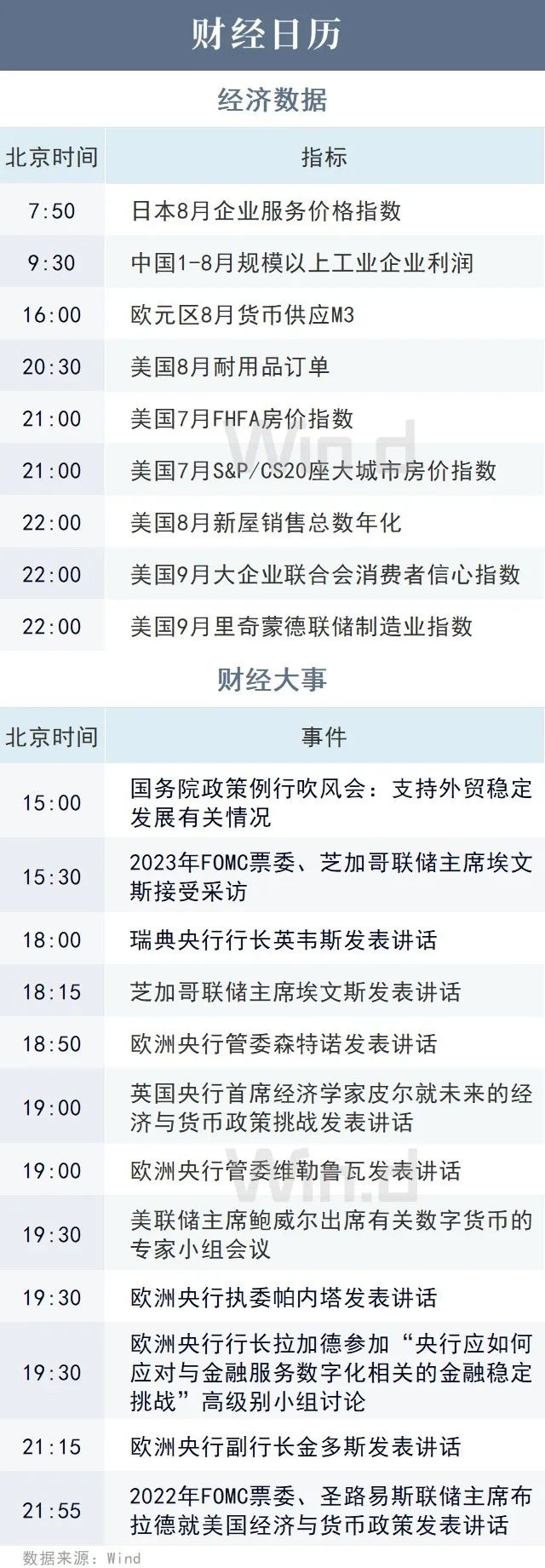 本周有十余位美联储高官参加多达约20场的公开演讲和媒体采访等活动!日内美联储埃文斯最新发言称,美联储的预测显示,今年将加息100-125个基点;认为在某个时候减缓加息步伐是合适的;其预期大致与美联储对2022年底利率在4.25-4.50%的评估中值一致。今晚,鲍威尔出席有关数字货币的专家小组会议。稍晚后,布拉德也将就美国经济与货币政策发表讲话。