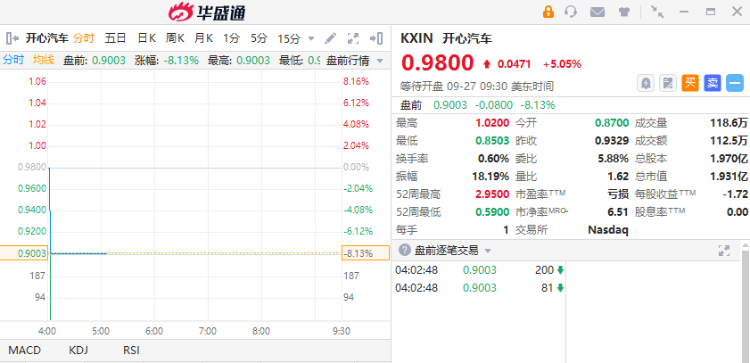 开心汽车表示,该公司已与无锡茂林斯达公司(Morning Star)签署了约束性并购意向书。根据条款,开心汽车拟通过发行新股收购茂林斯达全部股权,使其成为全资子公司。开心汽车与茂林斯达一致同意尽快推进本次并购交易,预计在今年10月底之前签署并购SPA,并在2022年底前完成交易。截至北京时间17:05,开心汽车盘前跌超8%。