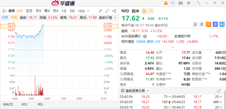 天眼查App显示,9月14日,上海蔚来汽车有限公司申请注册“NIO CERTIFIED 蔚来官方二手车”商标,国际分类包括金融物管、网站服务、广告销售,目前商标状态均为申请中。据了解,去年1月,蔚来推出官方二手车NIO Certified,宣布通过自营方式运营官方二手车,为二手车用户提供高质量服务。截至北京时间17:45,蔚来盘前涨超3%。