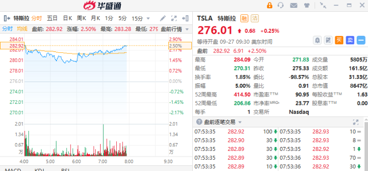 特斯拉预计在本季度末将迎来“高成交量”。在一封写给员工的电子邮件中,特斯拉管理层写道:“在第三季度的最后几天,我们将向急切等待的客户交付大量车辆。为了确保我们能让尽可能多的客户满意,交付团队正在请求对关键交付执行任务提供额外的支持。”截至北京时间19:53,特斯拉盘前涨超2%。