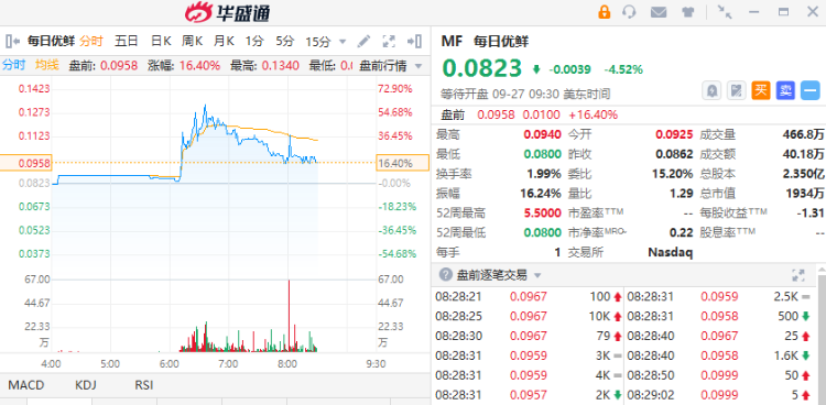 每日优鲜 $MF 美股盘前短线拉升,现涨超16%