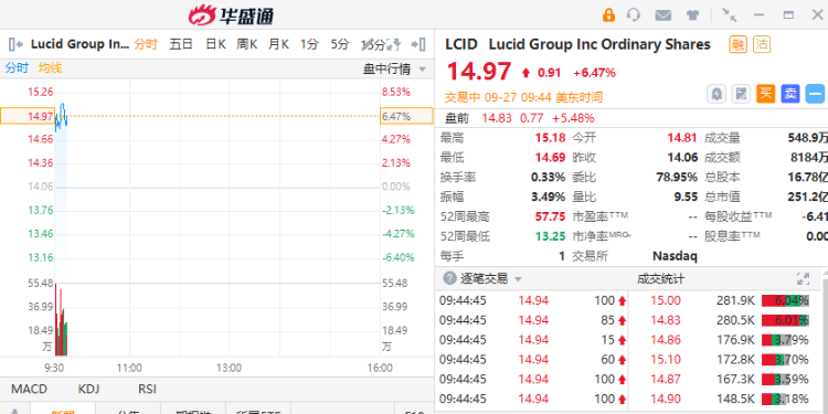 Lucid涨近7%,Cantor Fitzgerald首予Lucid其“增持”评级,目标价为23美元,分析师看好Lucid车型竞争力。