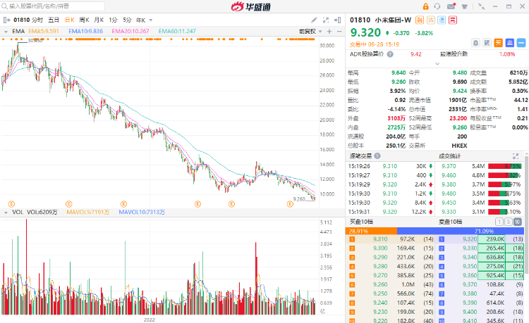 值得注意的是,虽然小米持续加码回购,但在股价表现上却似乎不尽如人意。今年以来,小米震荡走跌,股价近乎腰斩;9月28日,小米股价盘中低见9.26港元,续刷近52周新低。