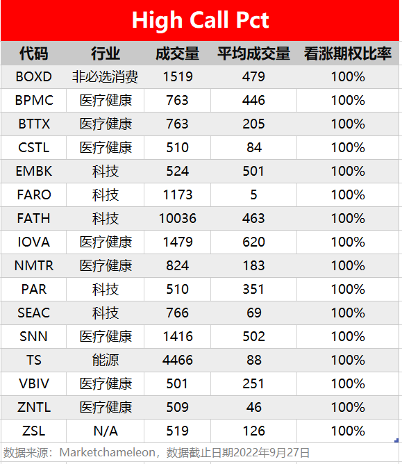 注:High Call Pct/High Put Pct是指相关期权标的当前看涨/看跌比例大小,该比值越高意味着该期权标的看涨/看跌的合约占比越高。