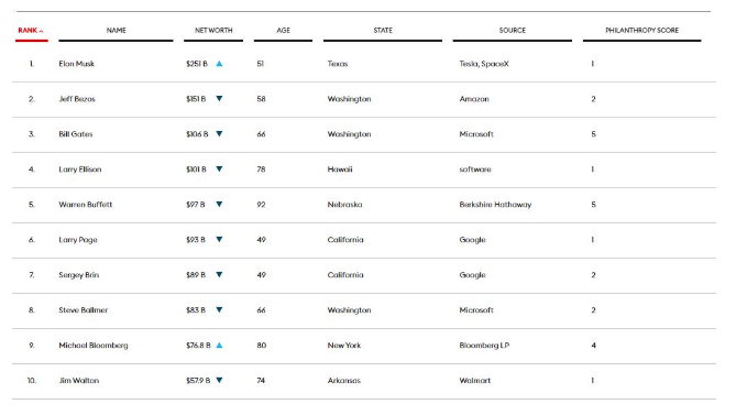 马斯克 $TSLA 登顶福布斯2022年度美国富豪榜:这是美国最富有的20人