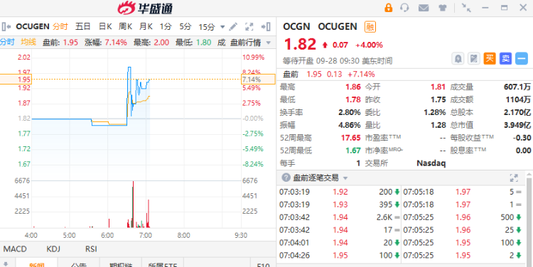 截至北京时间19:04,Ocugen盘前涨超7%,该公司与华盛顿大学达成鼻内注射Covid-19疫苗的许可协议。