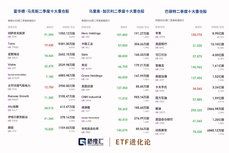 从霍华德·马克思、马里奥·加贝利和巴菲特二季度持仓股来看,三位大师集中在能源、消费、工业和公用事业股上。